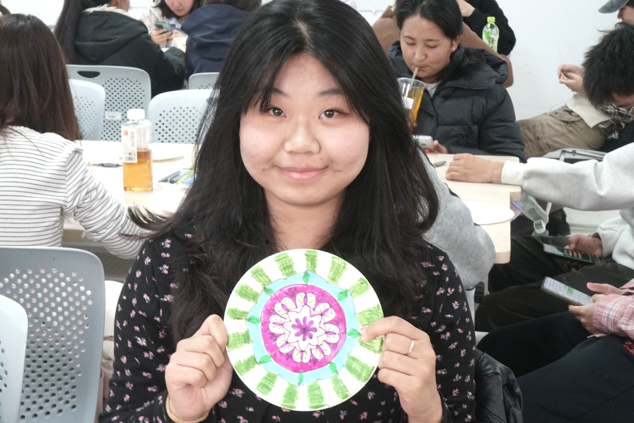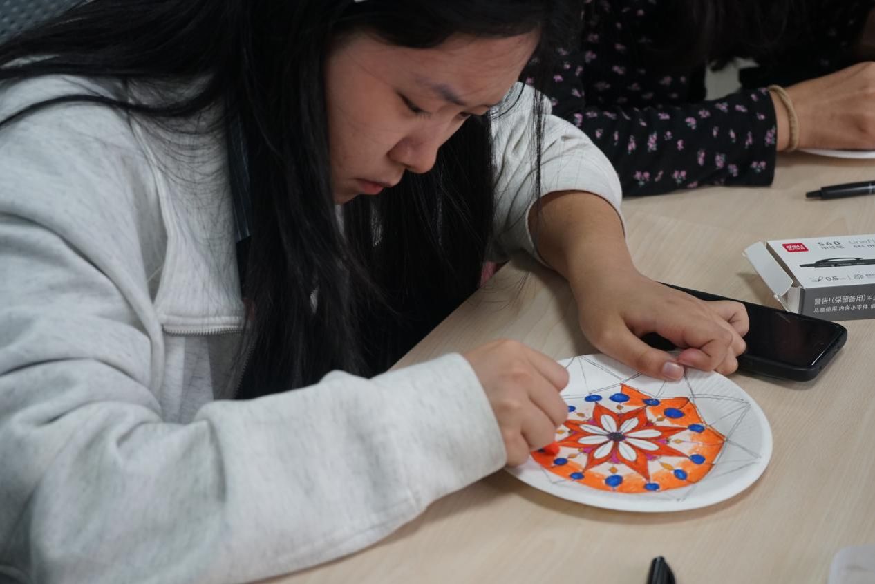 我平时就喜欢画画,看到这次有曼陀罗活动就报名了。整个过程特别治愈,心情很愉快。希望下次还能有手工活动,比如剪纸之类的。