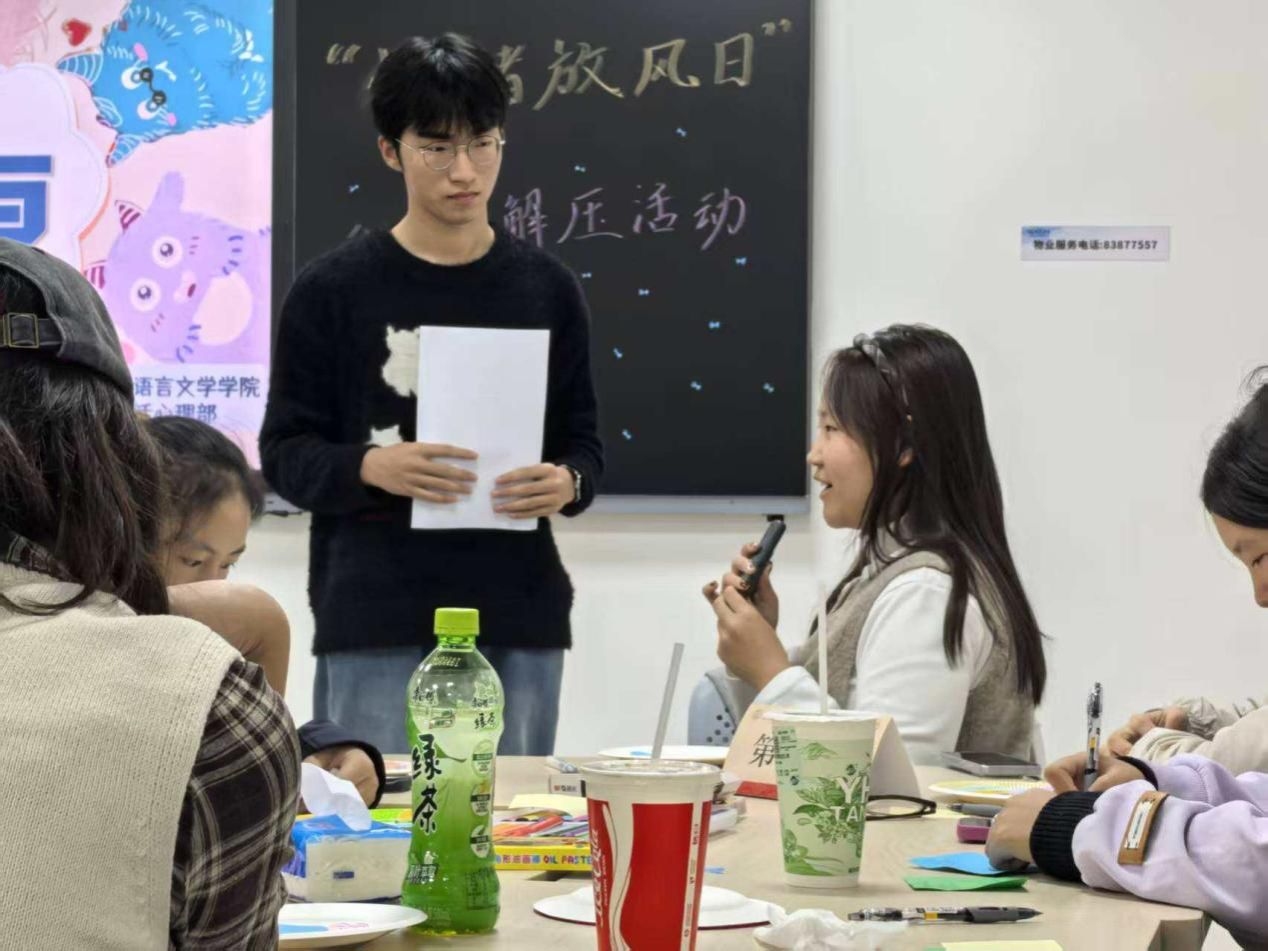 学生会生活心理部精心策划的“情绪放风日”心理解压活动在丰台校区日新楼521教室温情开展。