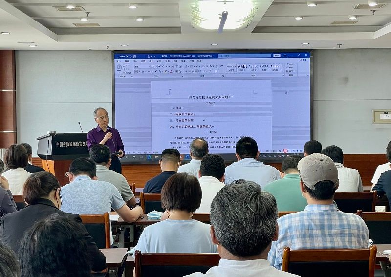 李鸿宾教授以《读马克思的<论犹太人问题>》为主题,分别从鲍威尔的观点、马克思的回应以及马克思论犹太人问题的意义等方面,阐述了自己的读书心得和教学反思,强调高校教师应当具有高度的自明性,要具有较强的分辨能力和认知能力,不断反思教育和教学,更好地担负起教书育人的使命。