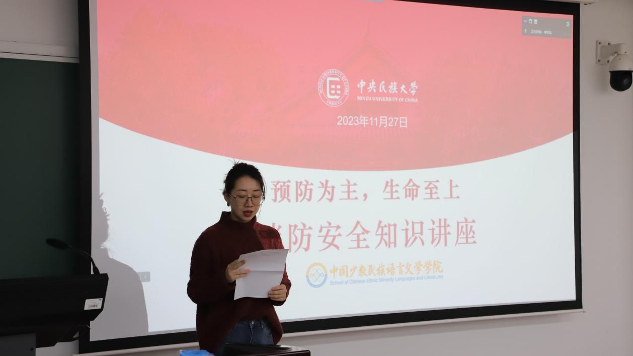 在日新楼315教室举办了“预防为主,生命至上”消防安全知识专题讲座。学院党委书记袁辰霞,学院党委副书记、纪委书记阿力木·托合提,党委保卫部副部长、保卫处副处长宋理斌,学院党委副书记仁乃杰,丰台校区安全保卫办公室倪华,学院团委书记崔艺璇,学院专职辅导员罗藏才让等领导老师参会。学院学生会、研究生会,本硕博各班班长、生活委员、安全委员、宿舍长等两个校区的学生干部以线上线下方式参加了本次专题讲座。