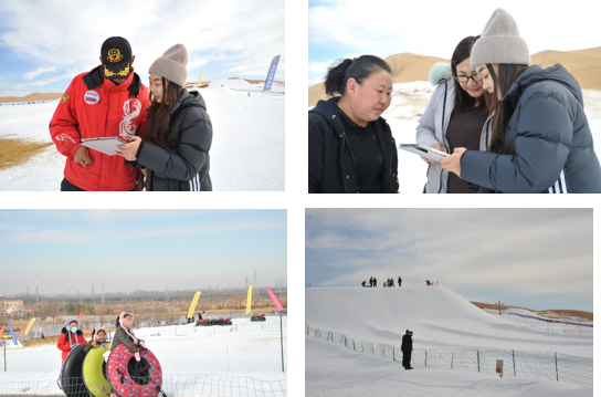 团队的两位成员前往鄂尔多斯市鄂托克前旗大沙头旅游景区冰雪游乐区进行了线下采访和问卷调查,采访对象包括普通居民、社区负责人、冰雪运动从业者和学校体育老师等,以采集鄂尔多斯市鄂托克前旗地区民众对北京2022年冬季奥运会认知情况。
