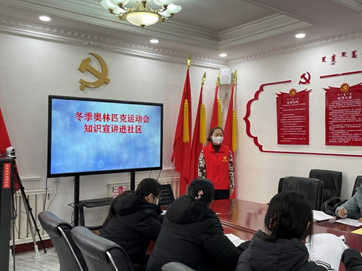 宣讲中,团队成员为社区居民和工作人员讲解了冬奥会的历史由来,北京冬奥会的会徽、火炬、吉祥物等文化符号的人文及科技内涵,介绍了冬奥会的申办筹办过程、比赛项目的规则特点及赛事文化、行动计划和智慧奥运的相关知识。通过宣讲、问卷填写、知识问答及游戏互动,社区居民们对北京冬奥会展现的中华文化内涵,向世界传递的和平友好信号,以及中国为推动世界冰雪和奥林匹克运动发展做出的不懈努力有了更加深刻的认识和了解。
