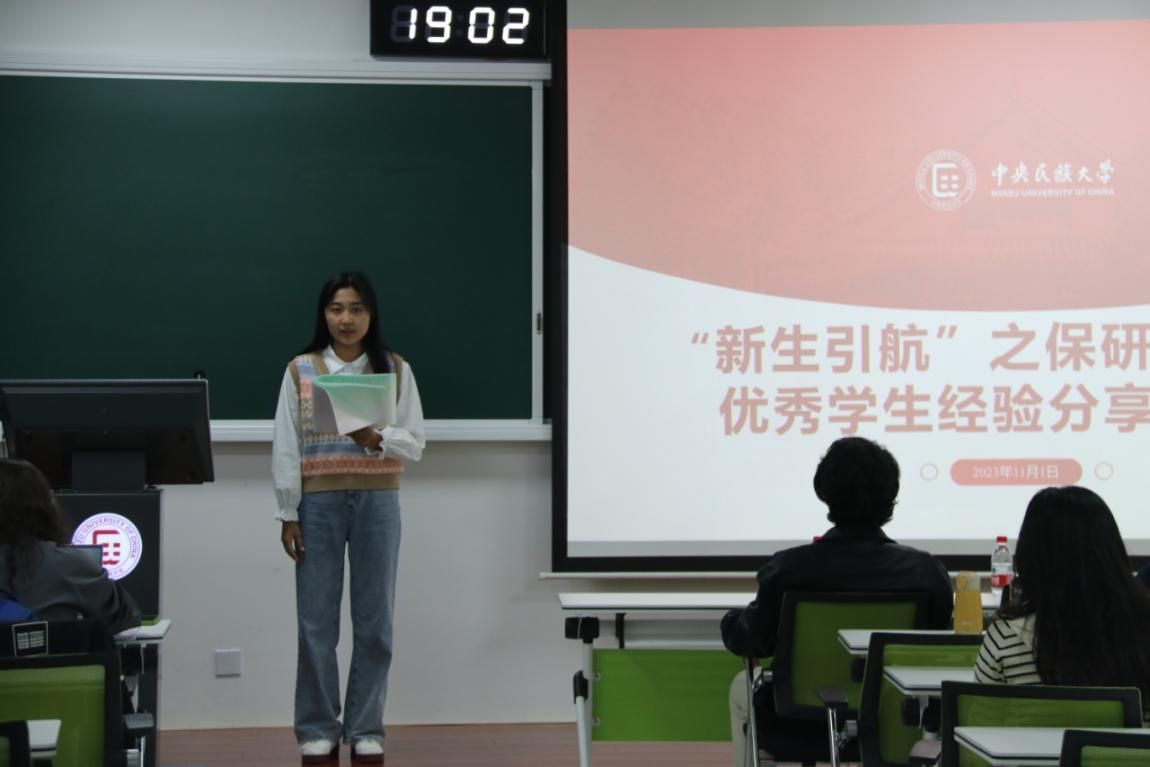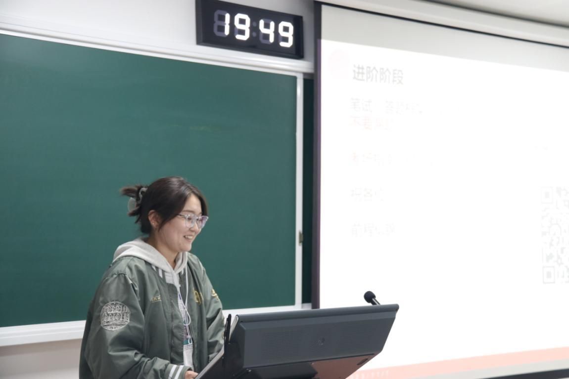 学生会于11月6日晚在丰台校区致远楼201教室举办了“新生引航”之保研考研经验分享交流会。学院团委书记崔艺璇及全体2023级本科生参加分享会。分享会由学生会办公室白向晴同学主主持。