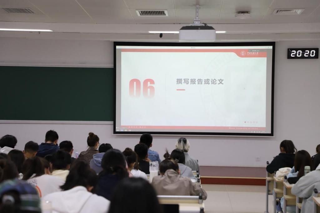 曾获“孝通杯”课外学术科技作品竞赛优秀奖的团队队长李春晓从选题注意事项、规范研究方法、科学田野调查、如何撰写报告等方面进行了分享。她提醒同学们社会实践和学术研究需要具备敏锐的观察能力、良好的执行能力和高效的沟通能力。