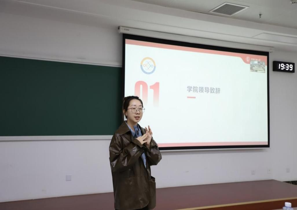 活动第一项,学院团委书记崔艺璇老师致辞。崔艺璇老师指出“新生引航”系列优秀学生经验分享交流会作为学院特色文化活动之一,已帮助多届少语新生尽快融入大学生活,引导他们树立目标、制定规划。此次创新训练与社会实践专题分享会的目的就是鼓励同学们发挥青年力量,在学习专业知识的同时,回到田野、走向社会,扎根祖国大地,践行青春担当。