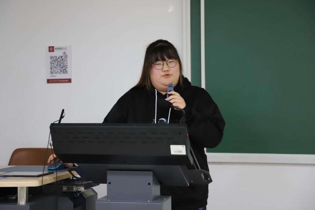 活动第二项,学院团委科创实践中心禹祯希进行宣讲。禹祯希同学以我院本科人才培养方案为出发点,系统介绍了寒暑期社会实践、“挑战杯”“孝通杯”、大学生创新训练等各类实践项目的举办周期、主题要求、活动安排等。