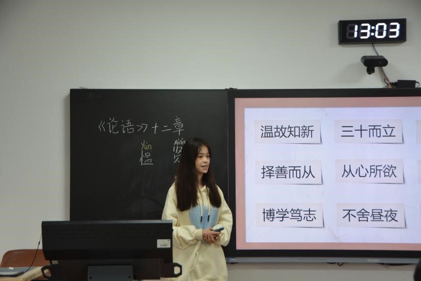 研究生赛场上,马睿以“秋”点题,通过分析《沁园春·长沙》中的景物描写,展现了别样的湘江秋景;孙平则以新闻评论的相关知识开篇,生动地讲述了“大国工匠”的匠心与匠魂;王兴君以《我不能失信》作为讲课内容,讲述了诚信对于个人的重要性。三位选手引经据典、内外延伸,让整场比赛紧张激烈又生动有趣。