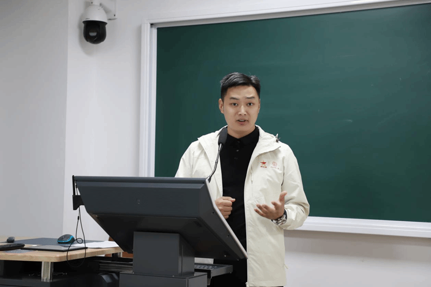 宣讲结束后,学院辅导员李永玖老师作总结发言,并与在场同学进行了互动交流。他讲述了自己远赴西部地区投身社会实践、志愿活动的经历,鼓励团学骨干以今日所学为火种,既做思想上的“追光者”,更当行动上的“擎炬人”。