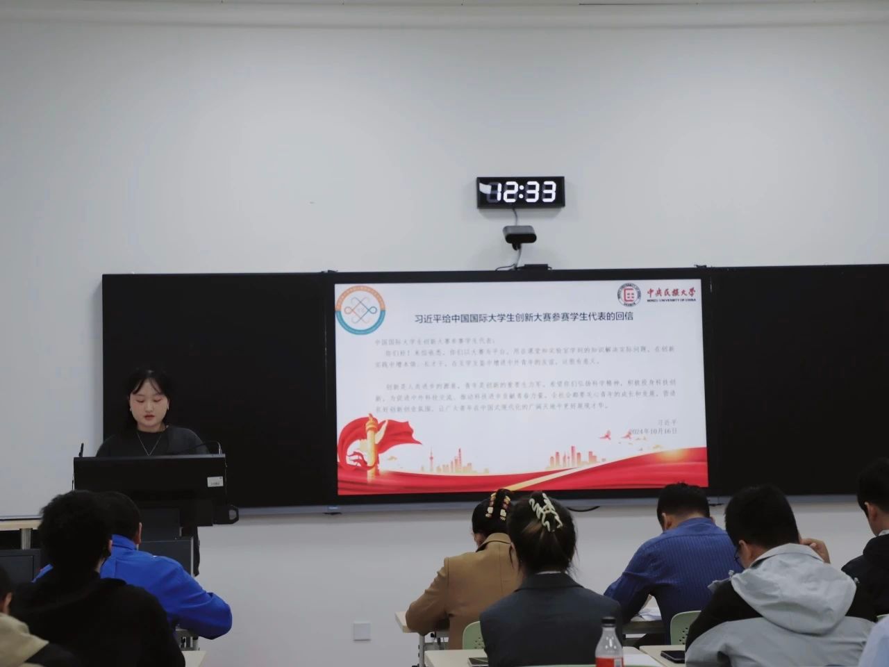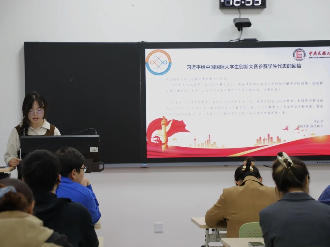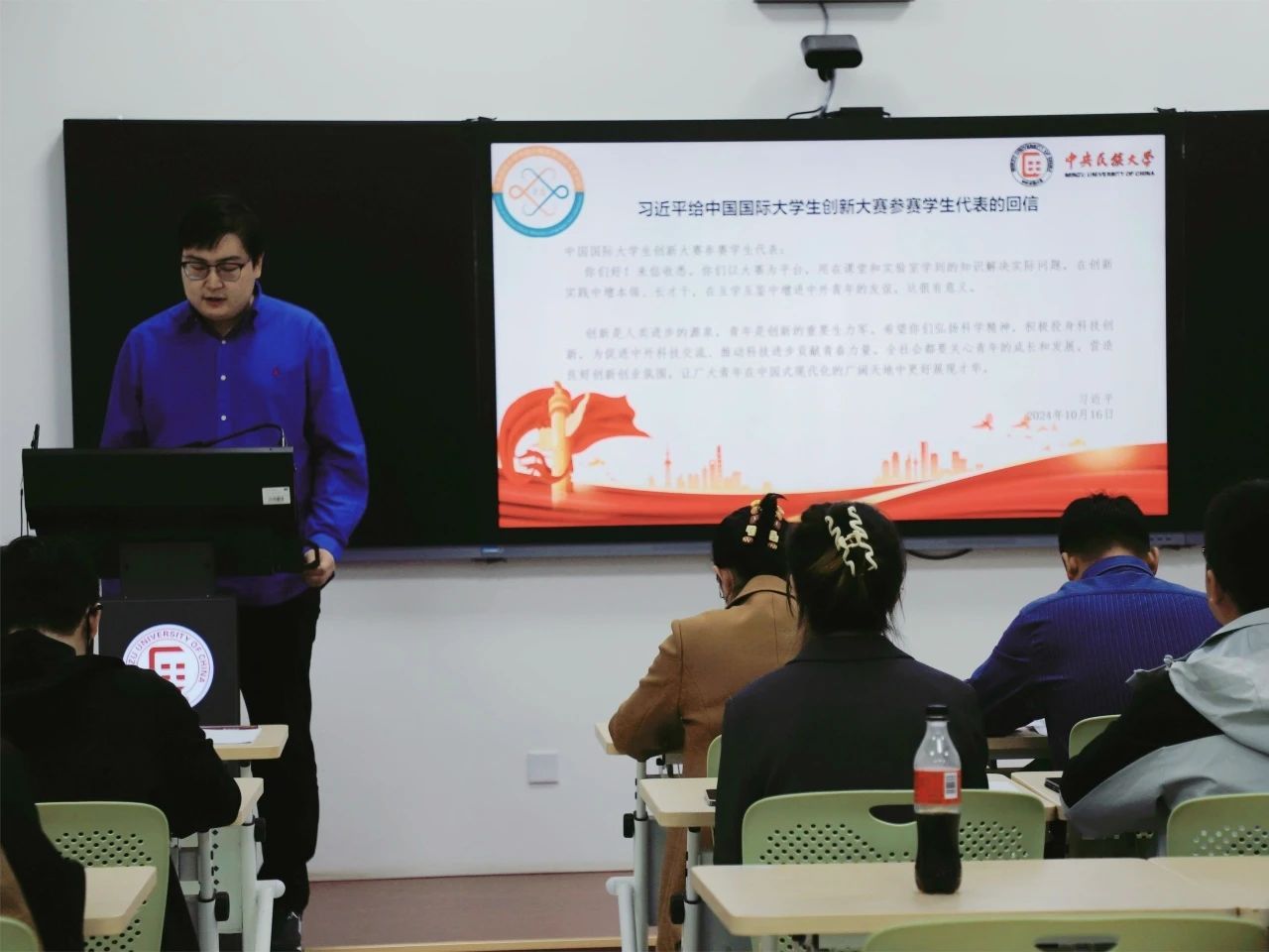 会议第一项,第六届研究生会副主席阿吉泰领读《习近平总书记给中国国际大学生创新大赛参赛学生代表发言的回信》,研究生会学生干部代表羊吉才让、娄慧颖、金小杨分别分享了学习心得。