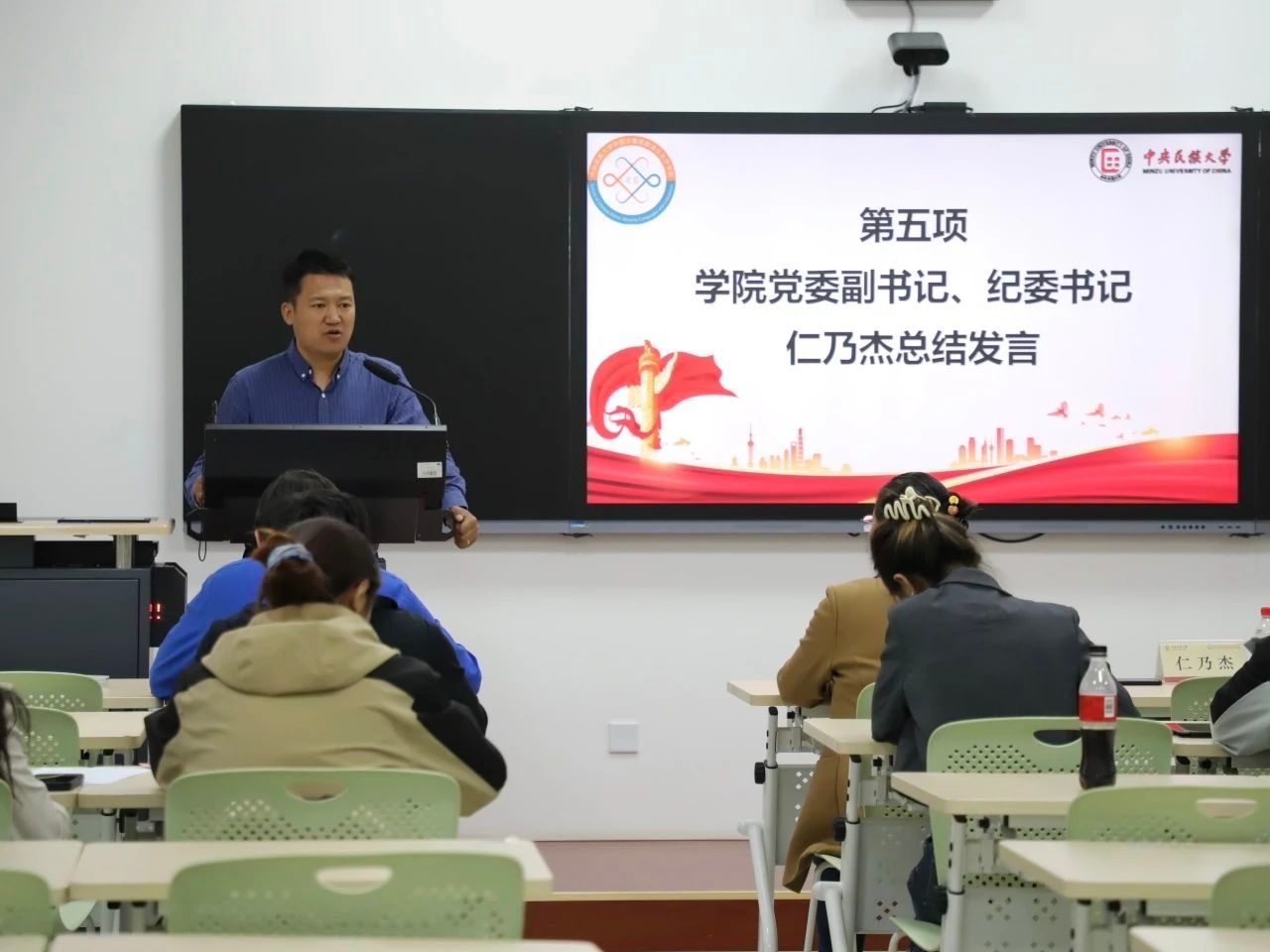 会议第五项,学院党委副书记、纪委书记仁乃杰做总结发言。他对我院第六届研究生会的成立表示衷心祝贺,并分享了三点体会:一是坚守初心,牢记使命。研究生会全体成员要在各项工作中勇担使命,真抓实干,落实落细各项工作,切实发挥好桥梁纽带作用;二是凝聚青年,服务师生。研究生会全体成员要在遵规守纪、学术科研、团队合作和民族团结等方面要以身作则,切实发挥好引领示范作用;三是立足岗位,准确定位。研究生会全体成员要聚焦主线,更新理念,创新方法,勤勉工作,以实际行动为学院发展贡献青春力量。