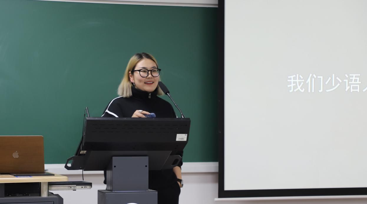 雪娜学姐以自身为例,鼓励同学们将自身兴趣爱好、特长与专业发展相结合,在就业中走出一条“少语+”的路径。她期待同学们能在大学期间找到自己的爱好并且坚持下去,“去开发属于少语学子们的一片蓝海”。