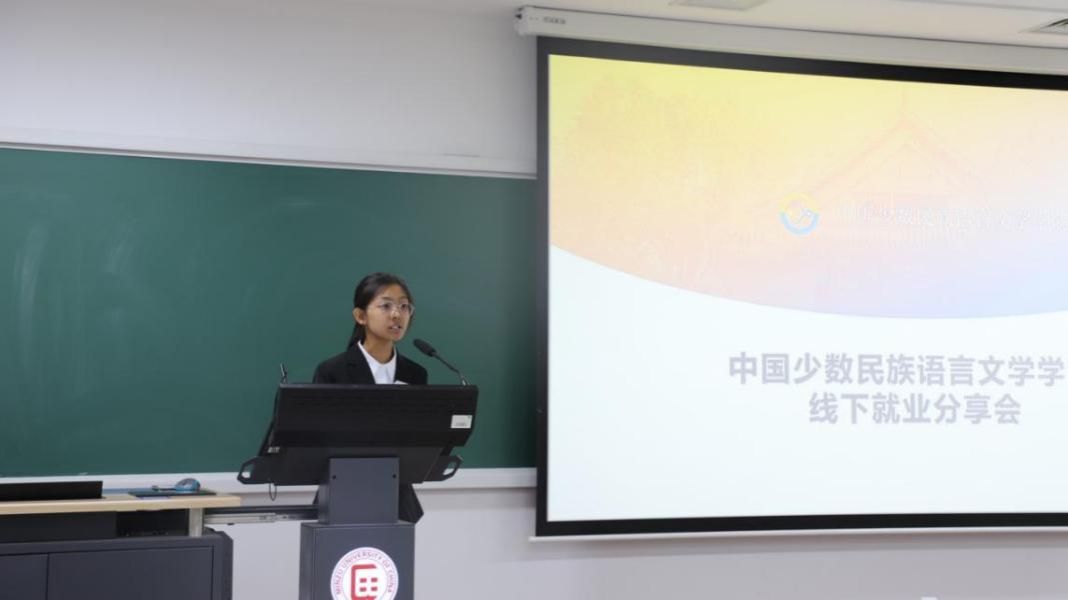 团委科创实践中心于2023年12月17日在丰台校区日新楼213教室举办“‘职’引未来,‘语’你偕行”创业经验分享会。学院团委书记崔艺璇老师和全体2022级本科生参加会议。会议由团委科创实践中心赵婉如同学主持。