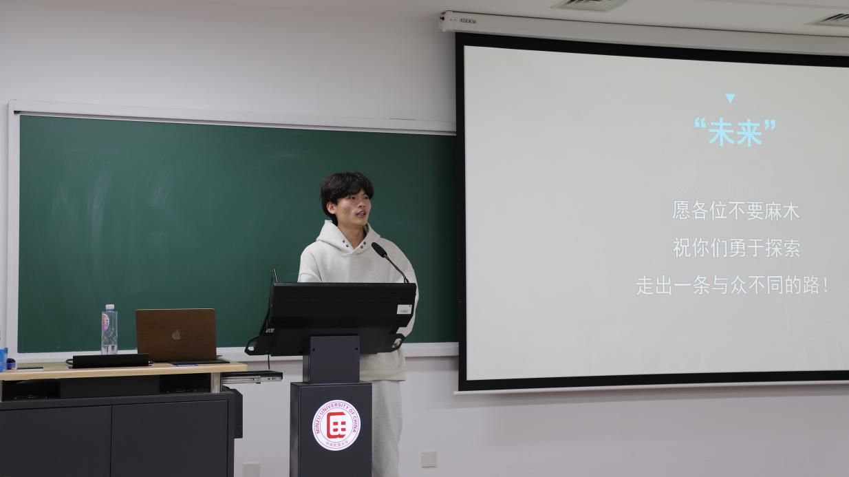 巴音其乐图学长以“想清楚自己喜欢什么”作为分享主线,讲述了自己的成长经历和创业经验,建议大家要学会意识扩张和创造情绪价值,不断尝试去改变,收获更好的自己。